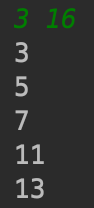 한 줄에 하나씩, 증가하는 순서대로 소수를 출력한다.