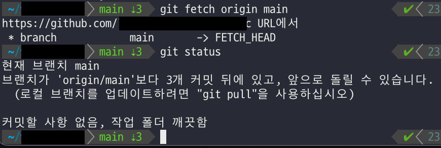 혹은 remote에 누군가가 커밋을 올렸고 그걸 fetch를 하게 되었을 때, git status로 확인을 하면