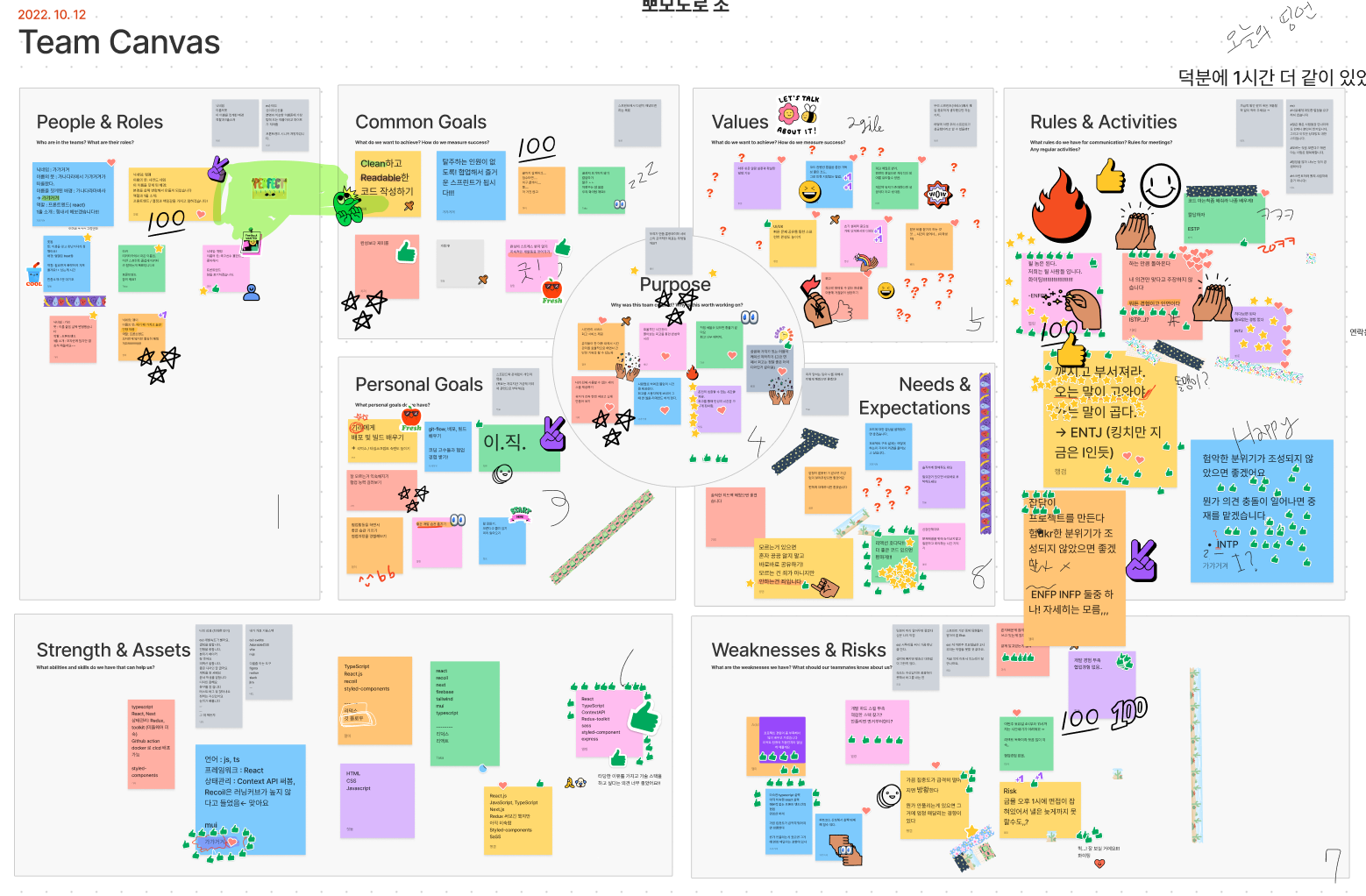 7명의 팀원들이 모였고 서로 알아가는 시간을 가졌다. 이미지는 작아서 안 보이겠지만 이러한 것들을 했다.