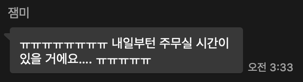 이때쯤부터는 서로가 ‘님’자를 빼고 부르는게 익숙해진듯..? 다들 마음이 잘 맞고 열정도 넘쳐서 새벽 늦게까지 회의하는게 즐거웠다