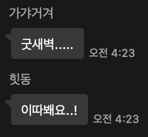 ** 이 날은 3시 쯤 끝난듯..? (이때부터는 사실상 몽롱한 상태가 default값이다.