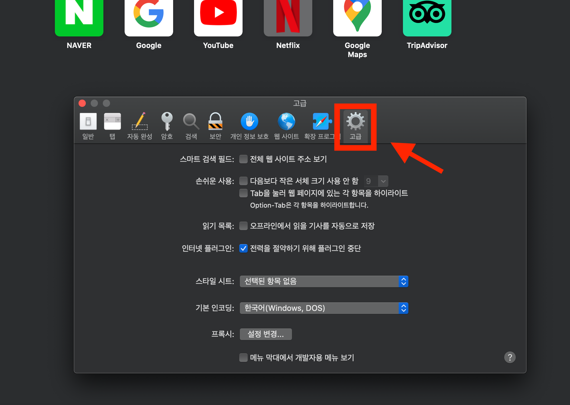 3. '고급' 클릭. 영어 몰라도 저거 못 찾으면 인성 문제 있음.