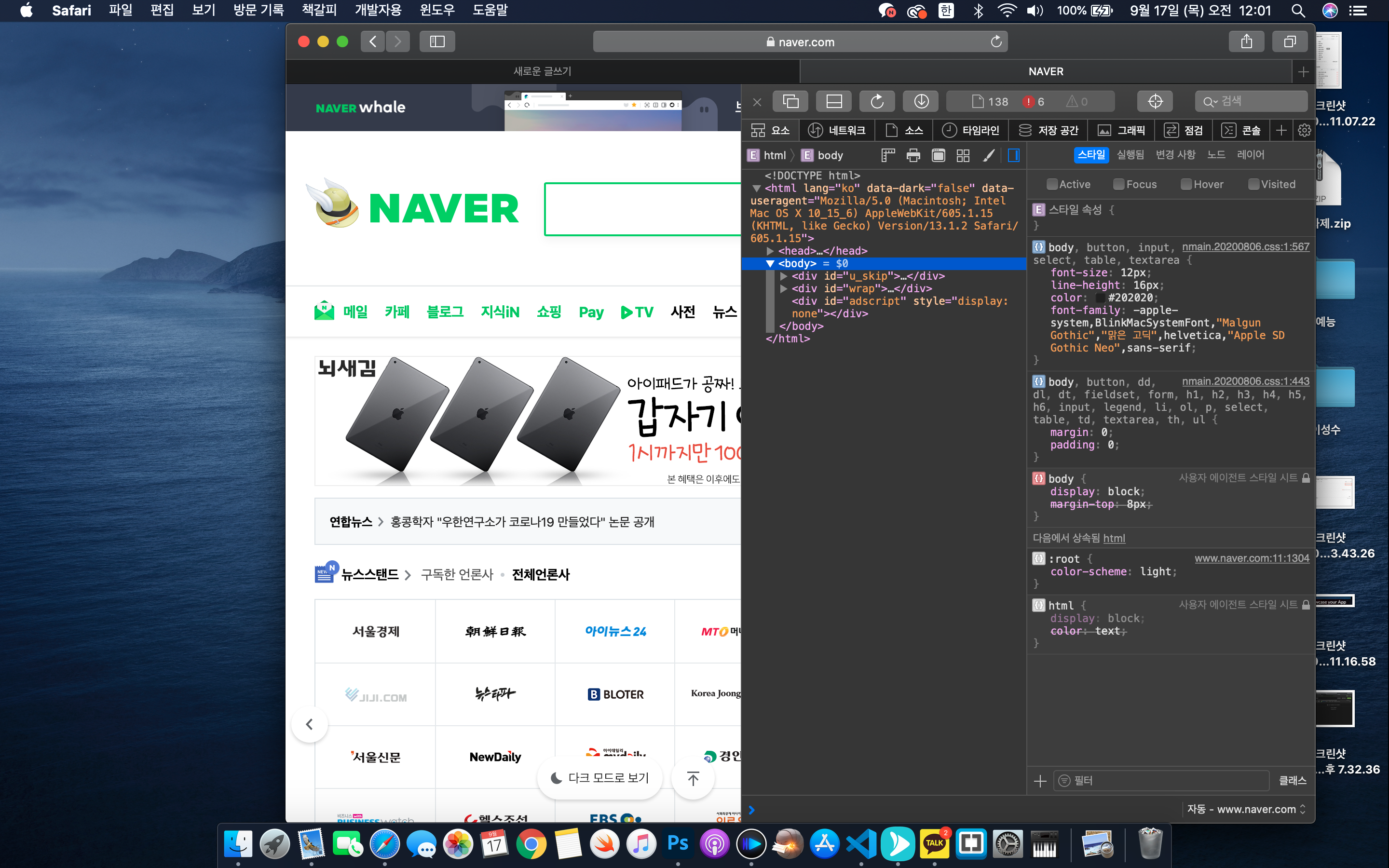 5. 단축키 option + command + i 확인하면 끝! [fn + f12는 안되더라.. 나만 그런가..?]