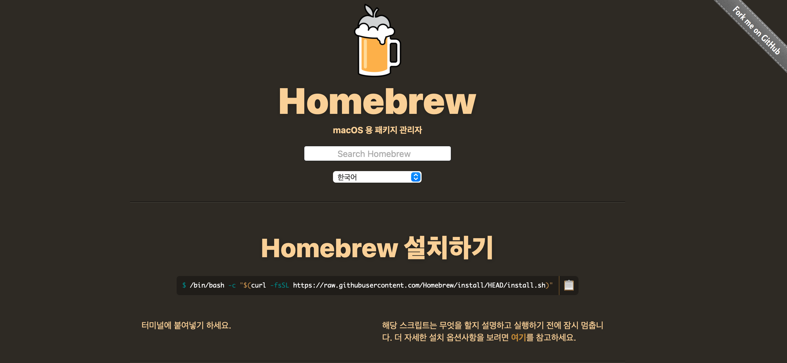 -macOS 용 패키지 관리자. 이게 무엇을 뜻하는지 잘 모르겠다. 일단 필요하니 다운받음..