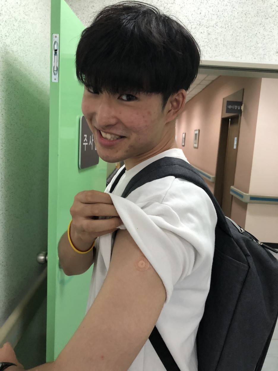 이렇게 해서 양팔에 예방접종을 맞았다.