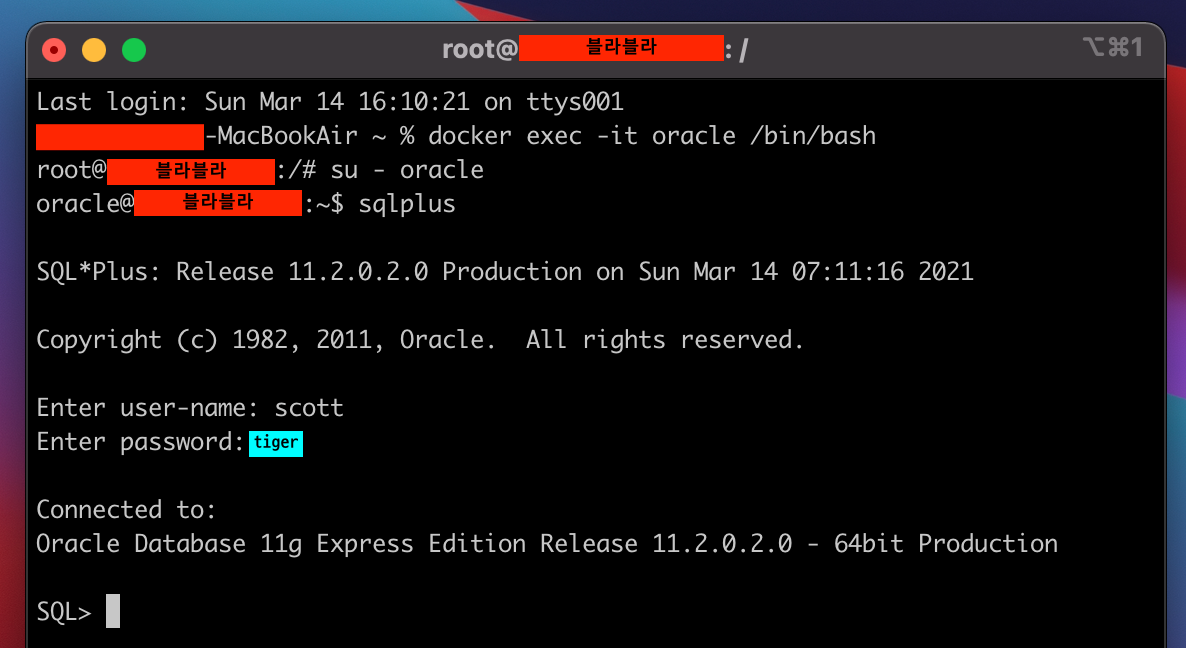 3. oracle@블라블라:~$ 다음에 sqlplus 입력