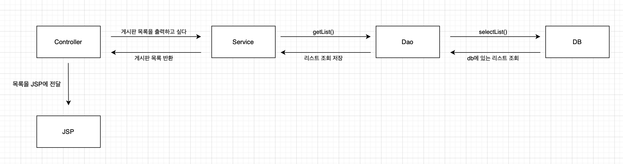 그럼 이제 최종적으로 컨트롤러에서 JSP로 전달받은 boardList를 보내주면 된다.
