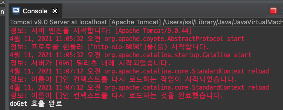- 쉽게 말하자면 doGet호출 (호출 성공하면 콘솔창에 출력) ->
