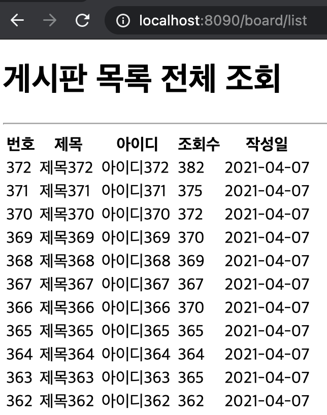 - DB에 있는 게시판 목록들을 웹브라우저에 출력하기.
