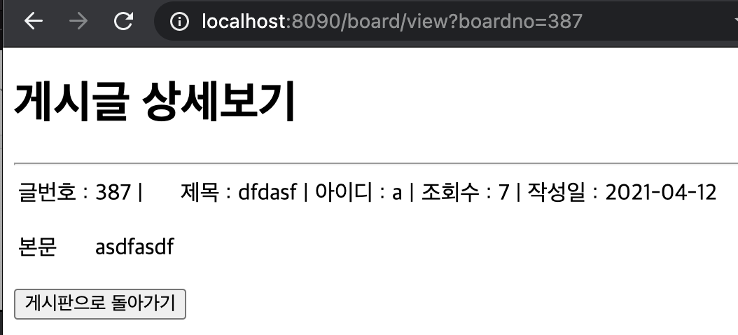 DB에 있는 게시판 목록을 조회했으니 이제 게시글 상세보기를 구현해보자.