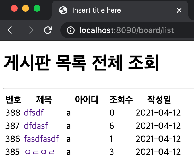 제목에 링크가 걸리고 클릭시 번호를 전달해주면서 view.jsp로 forwarding해주는 것을 확인할 수 있다.