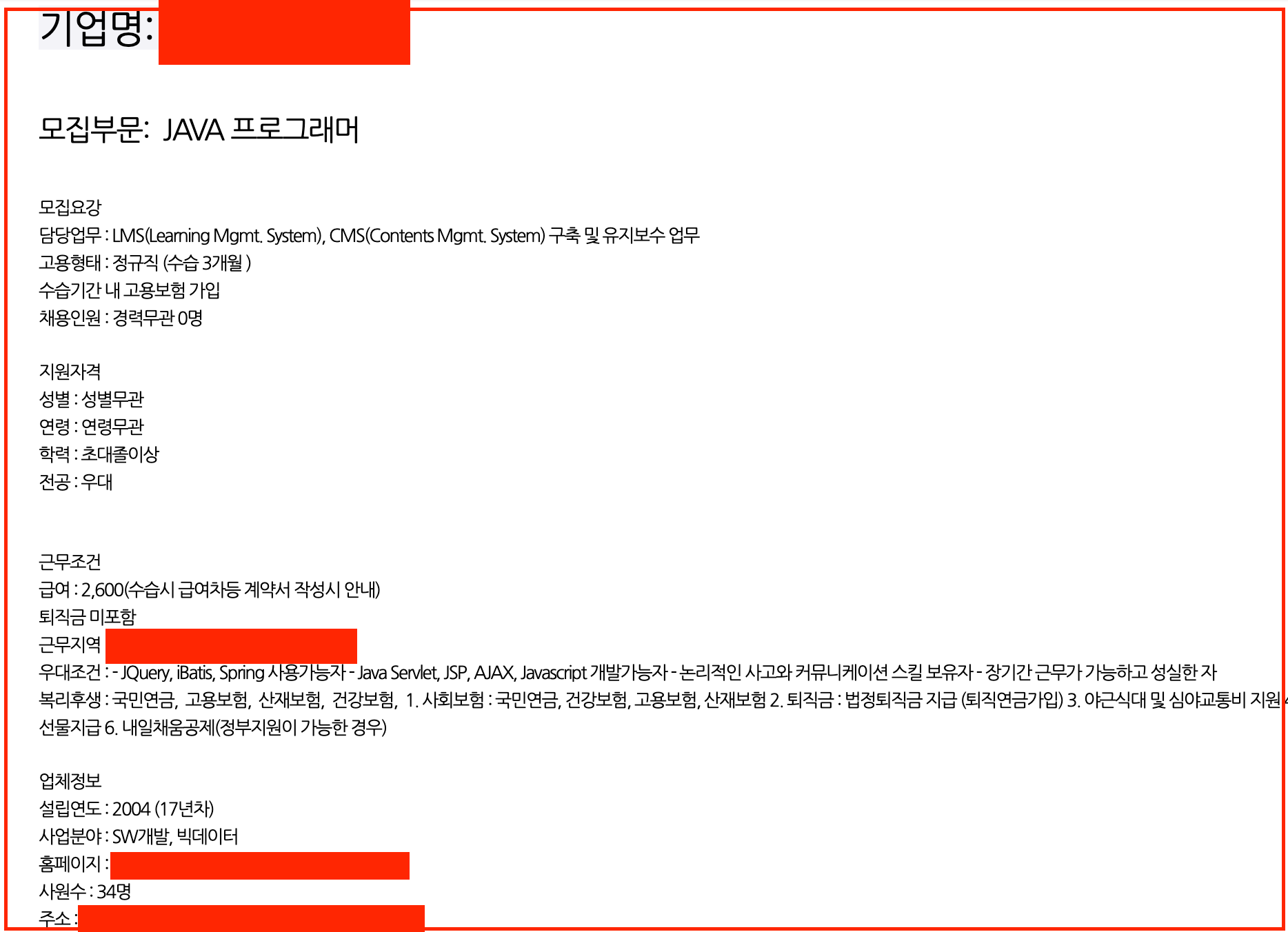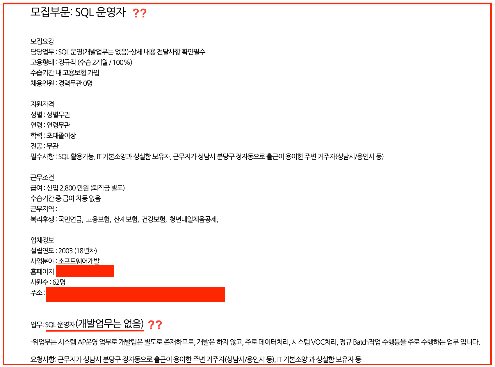 가장 어이없었던 곳 ㅋㅋㅋ SQL운영자..? 개발업무는 없음?? 그동안 자바 스프링 왜 배운거지...? ;;